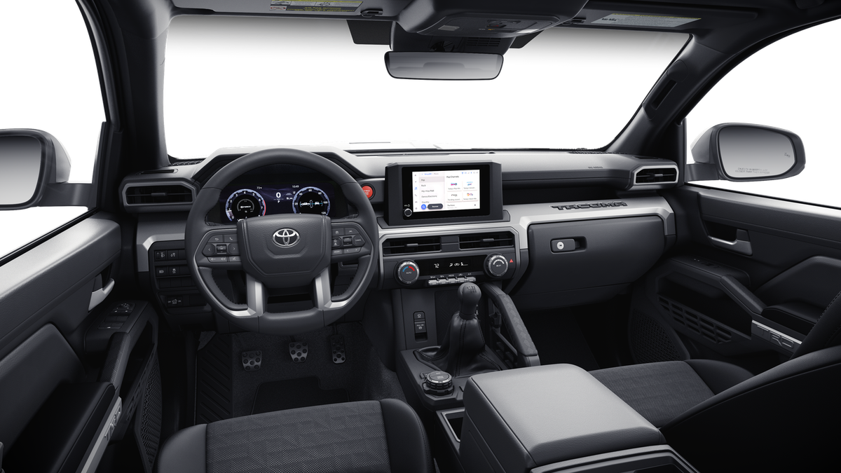 TRD Sport Premium Package (M/T) — includes SofTex®-trimmed seats with heated and ventilated 8-way power-adjustable front seats, leather-trimmed heated steering wheel, 14-in. Toyota Audio Multimedia display, Panoramic View Monitor (PVM), 39 JBL® 30 Premium Audio with JBL® FLEX 31 portable speaker, moonroof, Qi-compatible wireless charging, 46 dual zone automatic climate control, Front and Rear Parking Assist Sonar, 58 prewired auxiliary switches, digital rearview mirror, Integrated Trailer Brake Controller (ITBC), 29power open/close tailgate, 45 61 Digital Key 16 capability, 400W/120V 1 AC power inverter, and power horizontal rear window