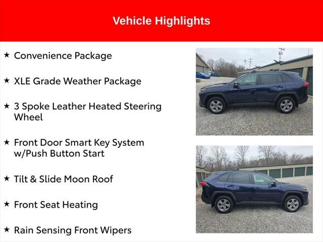 Certified. Recent Arrival! 2023 Blueprint Toyota RAV4 XLE 2.5L 4-Cylinder DOHC Dual VVT-i AWD This Toyota RAV4 has many features and is well equipped including, 3 Spoke Leather Heated Steering Wheel, Convenience Package, Front Door Smart Key System w/Push Button Start, Front Seat Heating, Rain Sensing Front Wipers, Tilt & Slide Moon Roof, XLE Grade Weather Package.