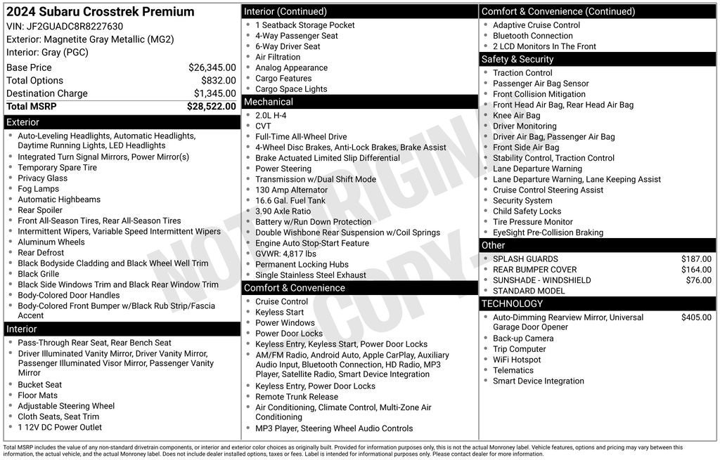 - Vehicle Name: Subaru Crosstrek
